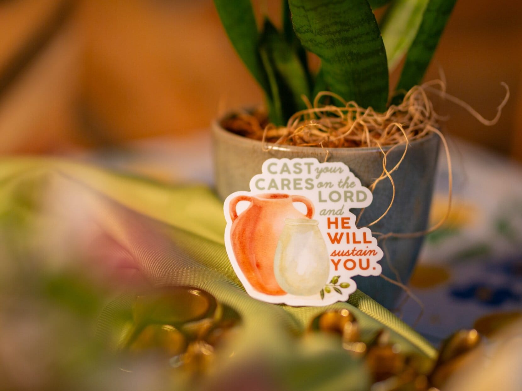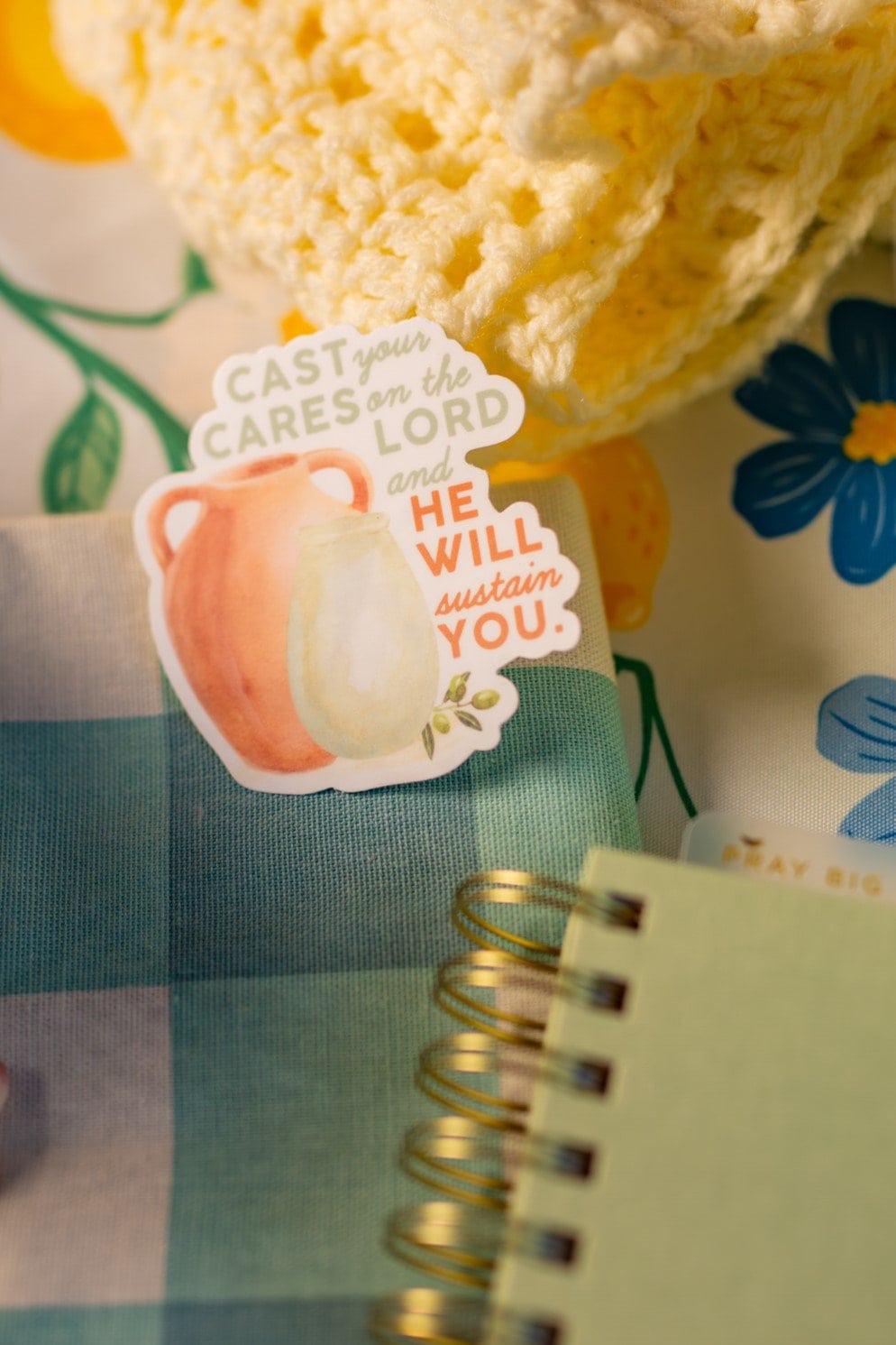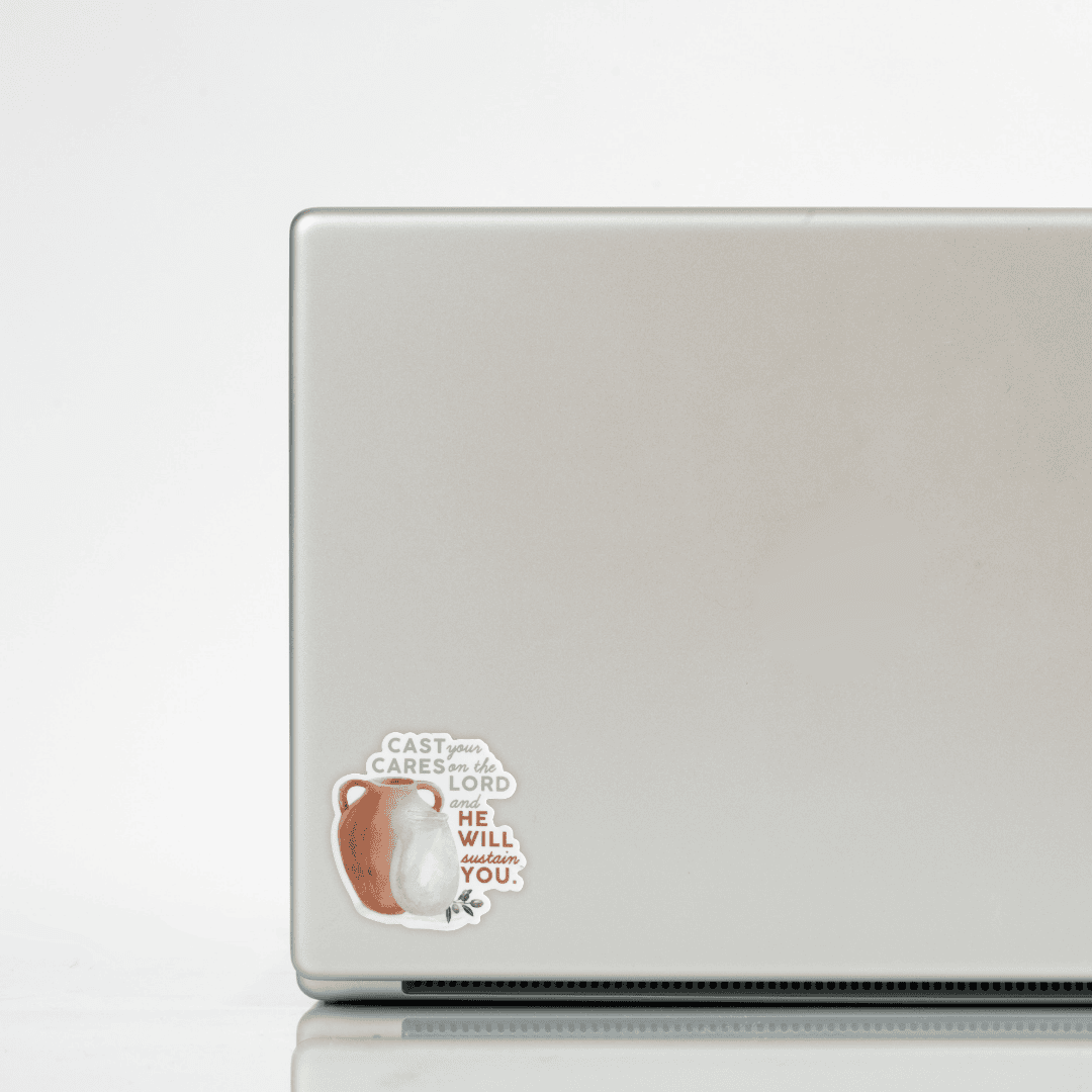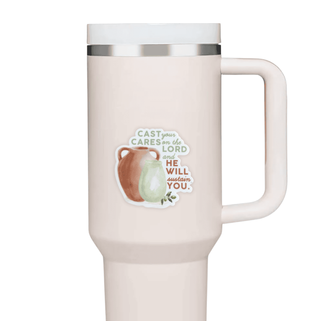 Inspired by Psalm 55:22. This sticker encourages you to release your worries into God’s care. Whether life feels overwhelming or you simply need a small nudge to pause, our prayer is this design will point your heart back to His strength and His faithfulness.