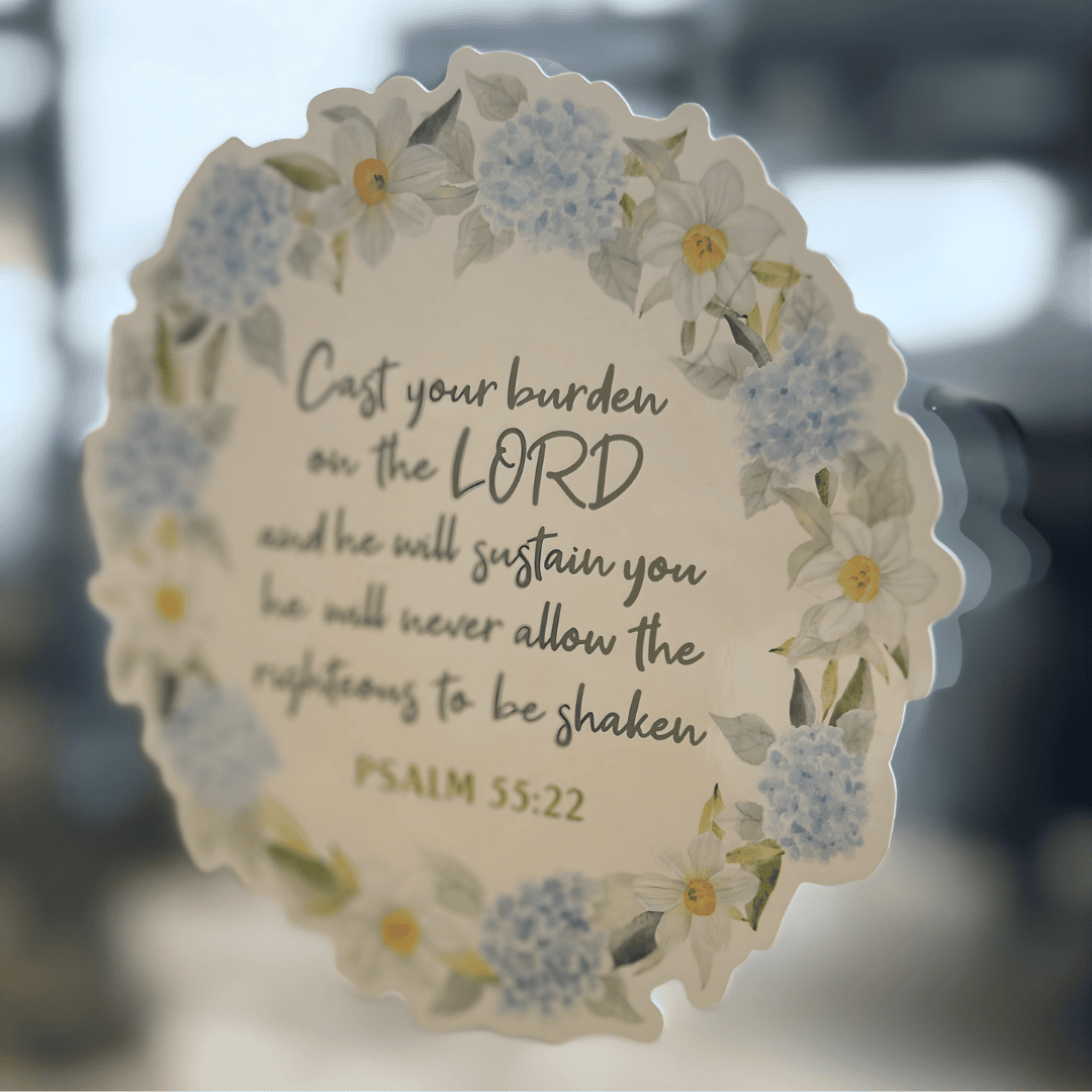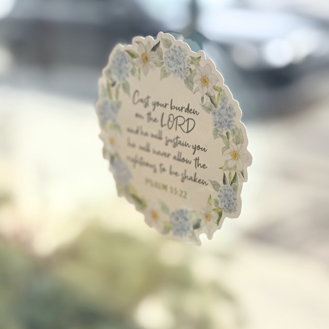 Sometimes the most powerful theology is the truth we need to see every day. The Psalm 55:22 Cling features the comforting words of the verse—Cast your burden on the Lord, and He will sustain you. It’s a simple reminder that we were never meant to carry life’s worries alone.